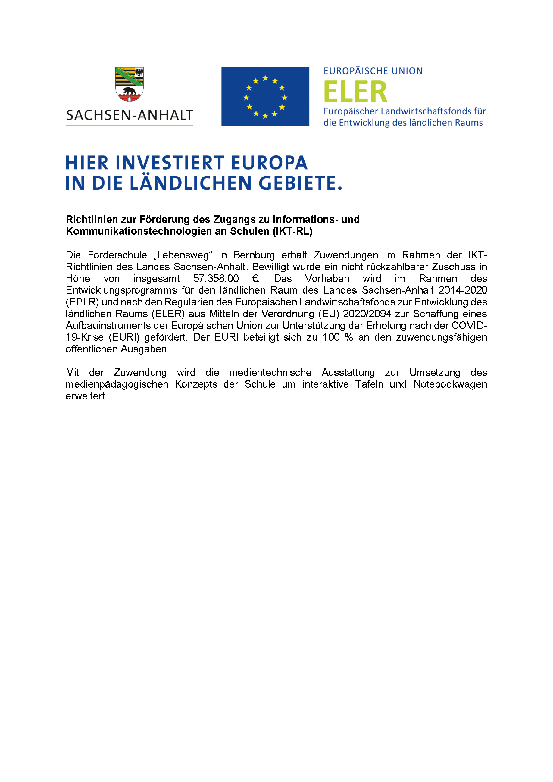 Für die Umsetzung des Förderprogramms DigitalPakt Schule (DigitalPakt-Richtlinie) gewährt das Land Sachsen-Anhalt für kommunale Schulen des Landkreises Salzlandkreis Zuwendungen aus Bundesmitteln.
